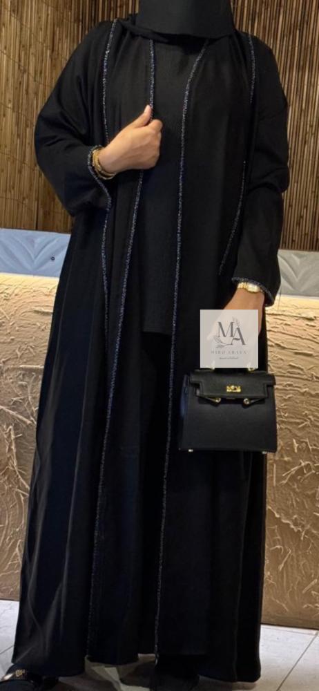 عباية بتصميم مرد مميز، مصنوعة من قماش صالونا كوري فاخر يتميّز بلمسة ناعمة وانسيابية، ولا يحتاج إلى كوي — لتكون خيارك المثالي في كل وقت.