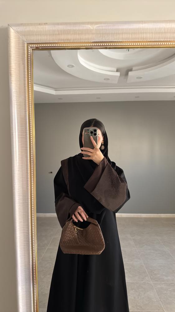 عباية رهف مصنوعة من قماش كريب كتان واقف، بتصميم ربع كلوش يمنحك حرية الحركة وأناقة انسيابية. أكمامها من قماش الجكار باللون البني المحروق لإضافة لمسة دافئة، مع إمكانية تغيير القماش لتصميم يناسب ذوقك.