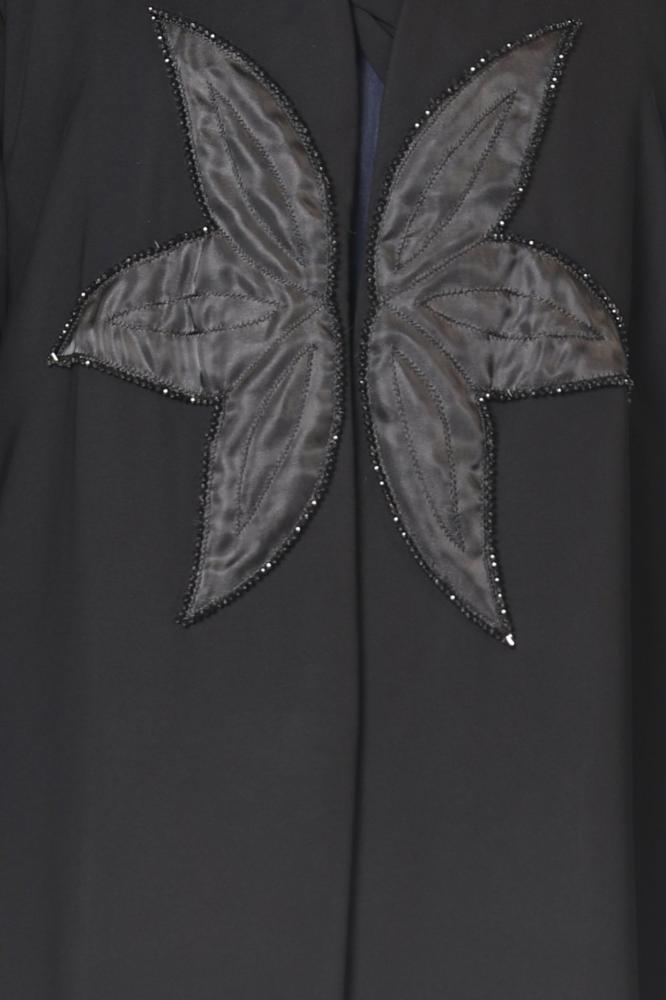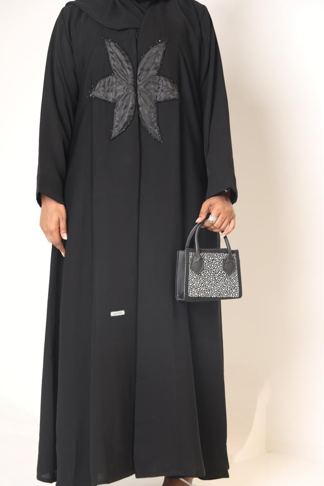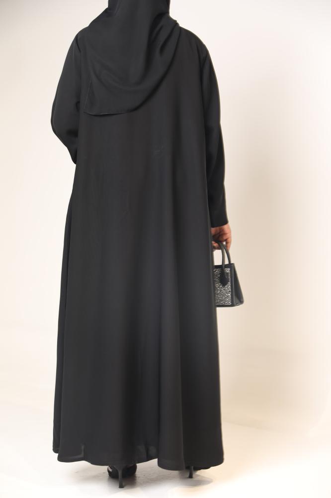 - التصميم: عباية نص كلوش بتطريز وردة أمامي